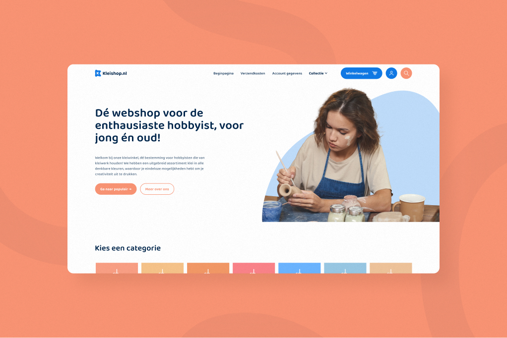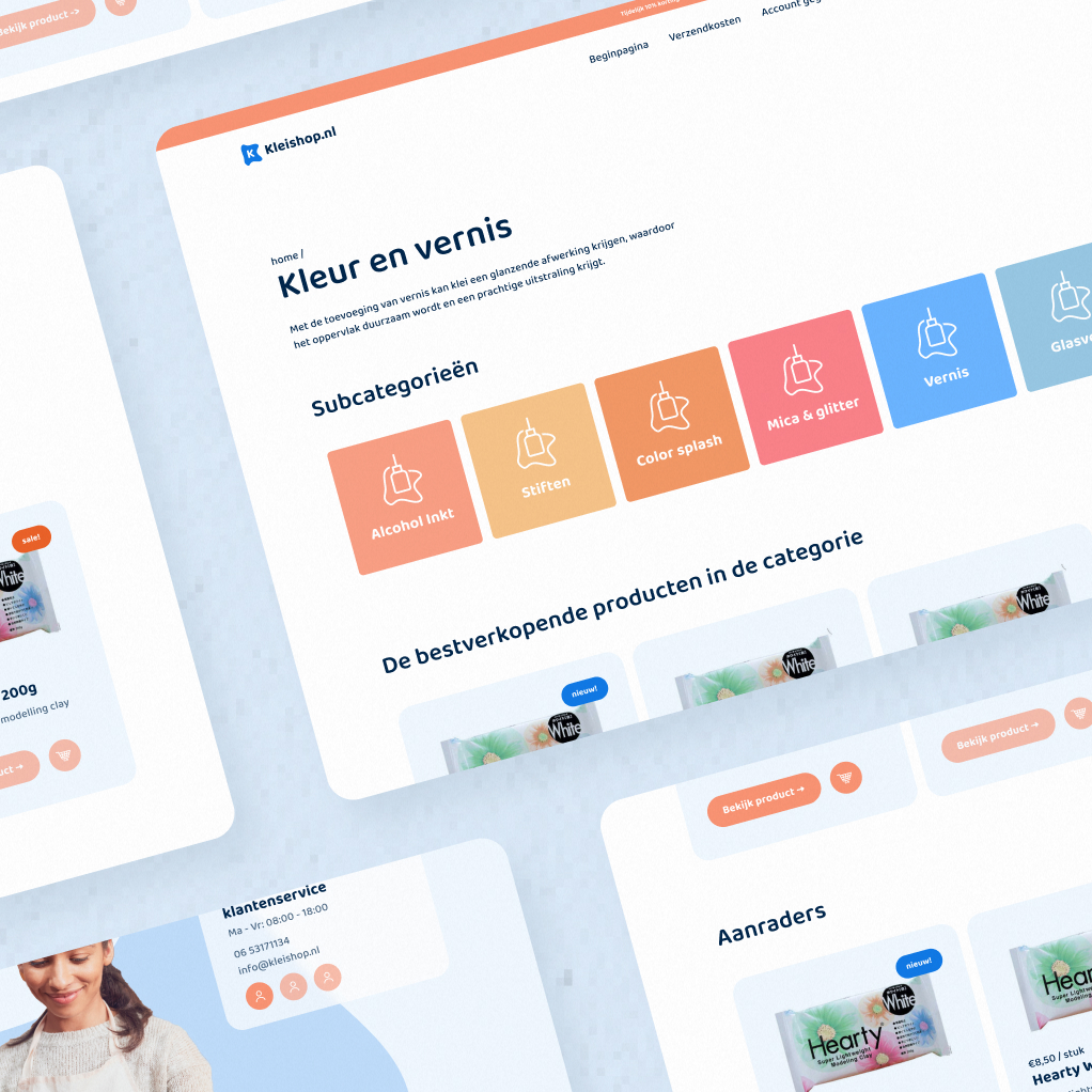Een deel van de designde nieuwe website van kleishop, een webshop met allerlei kleiproducten.